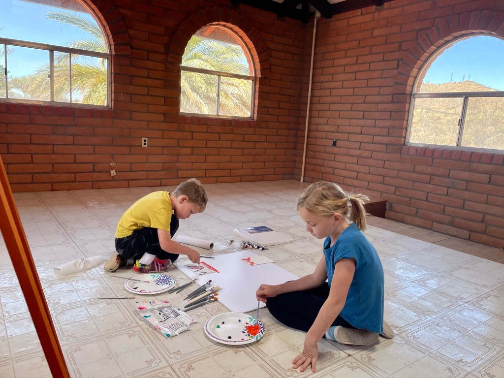 Patti has been gracious to let us stay at her casita in Nogales while she heads back to Orlando to finish out the school year. There’s always a void when saying “see you later” but we have a feeling we’ll be back here when she returns in June. We have all enjoyed settling into the simpler, slower pace of life. Our days begin and end with the sunrise and sunset. P &B have created some imaginative games and my goal of homeschooling has been so easy as one of their new favorite past times are drawing pictures and creating stories about them. We end most days by journaling and taking turns reading to each other. Visiting National and state parks also provide an incredible opportunity for experiential learning.
