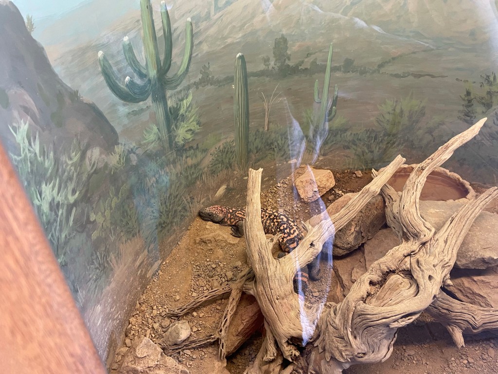 Our first trip to the desert museum situated outside Saguaro National Park. I overestimated and planned to see both in one day but the temperatures had us exhausted after two hours. I now understand why they open at 7am. The kids were mesmerized with this sleeping bobcatGila Monster, B’s favorite