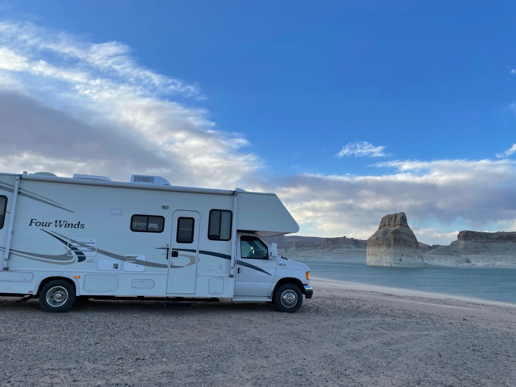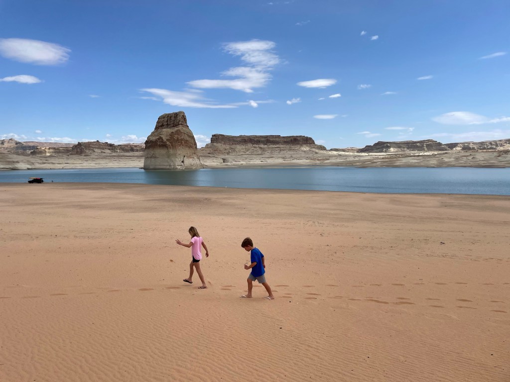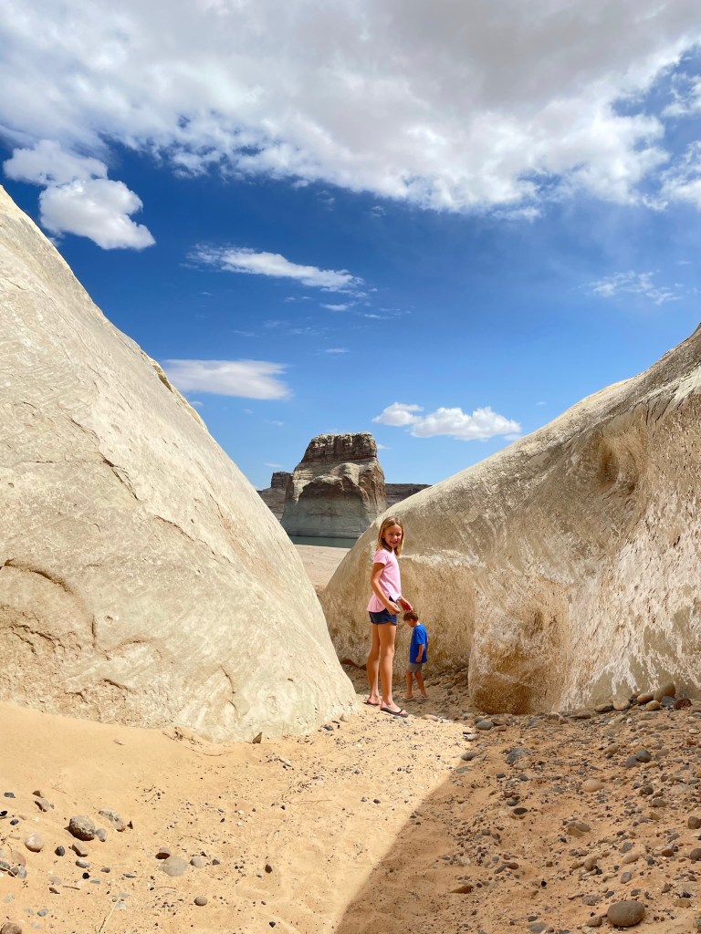 We had a few days before we had to be back in Tucson for our second COVID vaccine and landed at Lone Rock Beach. While the water was too chilly for a swim, the kids were so happy to be back on soft sand (minus tumbleweed spurs, OUCH). Don’t let the photos fool you, we were not the only people there. The shoreline was dotted by RVs, tents, and some serious extreme camping, towing outfits. Even with all the other people, it was a truly serene and beautiful place to explore for a couple days. Plus, 4 bars for Phil’s work!